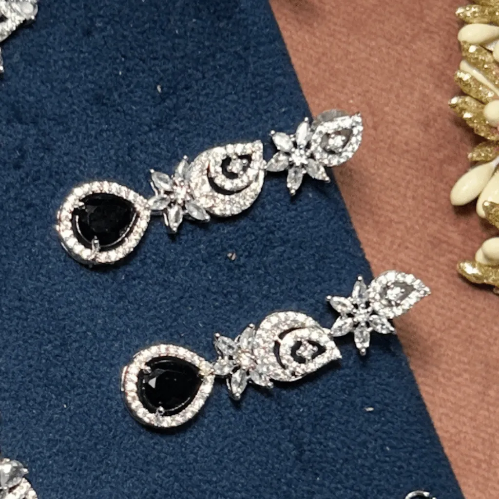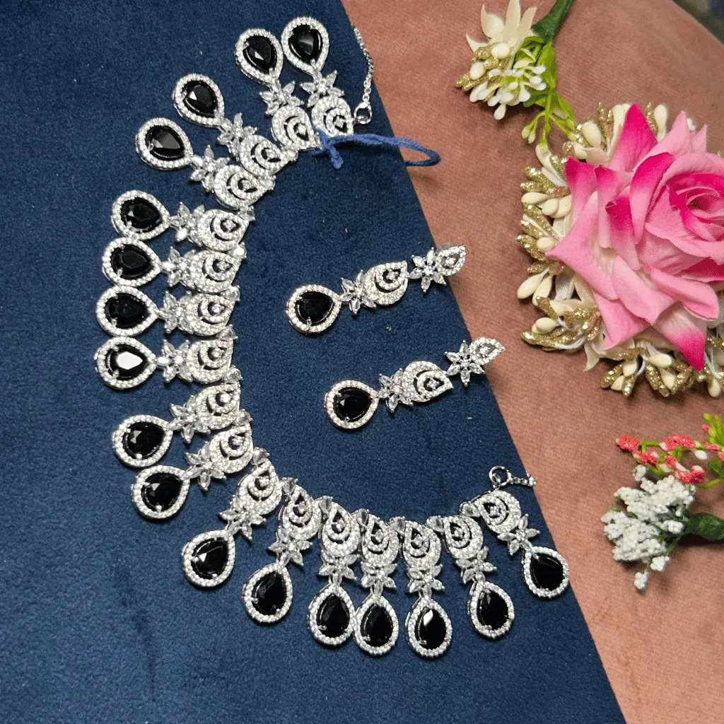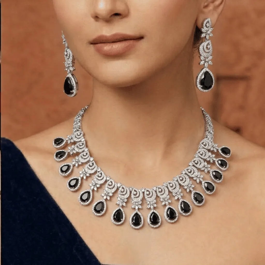 Define contemporary luxury with this architectural AD diamond necklace. Featuring a sleek, symmetrical V-design that contours the neckline, this rhodium-finished piece offers a brilliant, crystalline glow. Tailored for the Gen Z minimalist, its weightless feel makes it the perfect sophisticated choice for engagement parties, wedding festivities, or elevated festive styling.