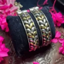 Embrace a touch of ancient elegance with this pair of Two-Tone statement bangles. These pieces feature a high-relief, rhythmic pattern of alternating gold and silver laurel leaves, creating a sophisticated architectural texture. Handcrafted with meticulous detail, the smooth, teardrop-shaped leaves are accented by delicate gold beadwork, offering a multi-dimensional look that captures the light from every angle. These versatile kadas are an exceptional choice for festivals, casual ethnic gatherings, or adding a high-contrast, artisanal edge to your contemporary wardrobe.