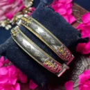 Embrace a sleek, contemporary take on heritage aesthetics with this pair of Two-Tone statement bangles. These pieces feature a refined architectural band with a smooth, polished oxidized silver surface, punctuated by rhythmic diamond-shaped dot clusters. The design is elegantly framed by radiant gold-toned twisted-rope borders and vibrant gold-accented stations at the clasp, offering a perfect high-contrast finish. Handcrafted for versatility, these kadas are an ideal choice for office ethnic wear, casual celebrations, or stacking with other kadas for a more elaborate tribal look.