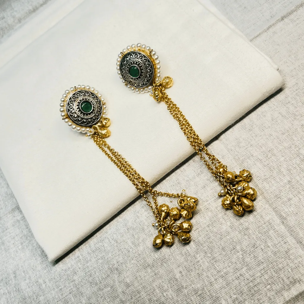 Dual-Tone Gold & Silver Statement Set with Emerald Accents