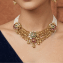 Redefine classic sophistication with this Heritage choker necklace. Anchored by a unique hexagon emerald centerpiece and vibrant ruby accents, the design is softened by multiple strands of delicate seed pearls. This handcrafted jewelry piece offers a seamless blend of vintage charm and a minimalist silhouette, perfect for making a refined statement at weddings or engagements.