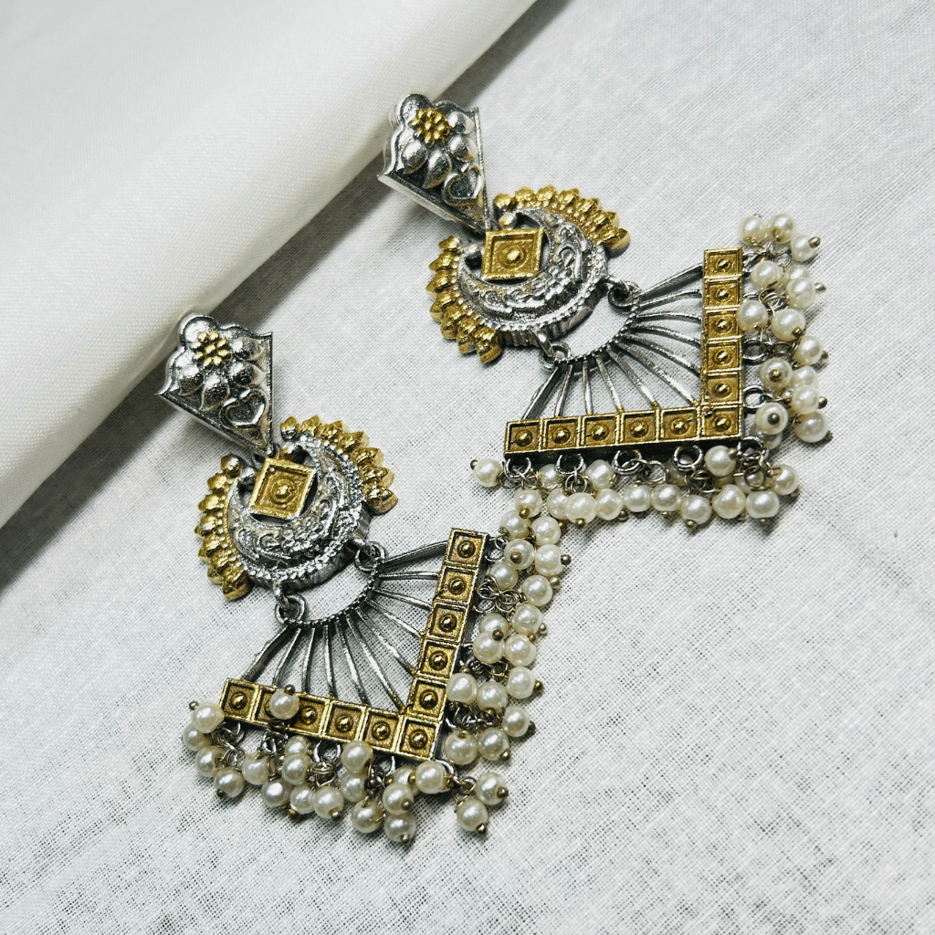 Handcrafted Oxidised Silver & Gold Statement Set with Pearl Fringe