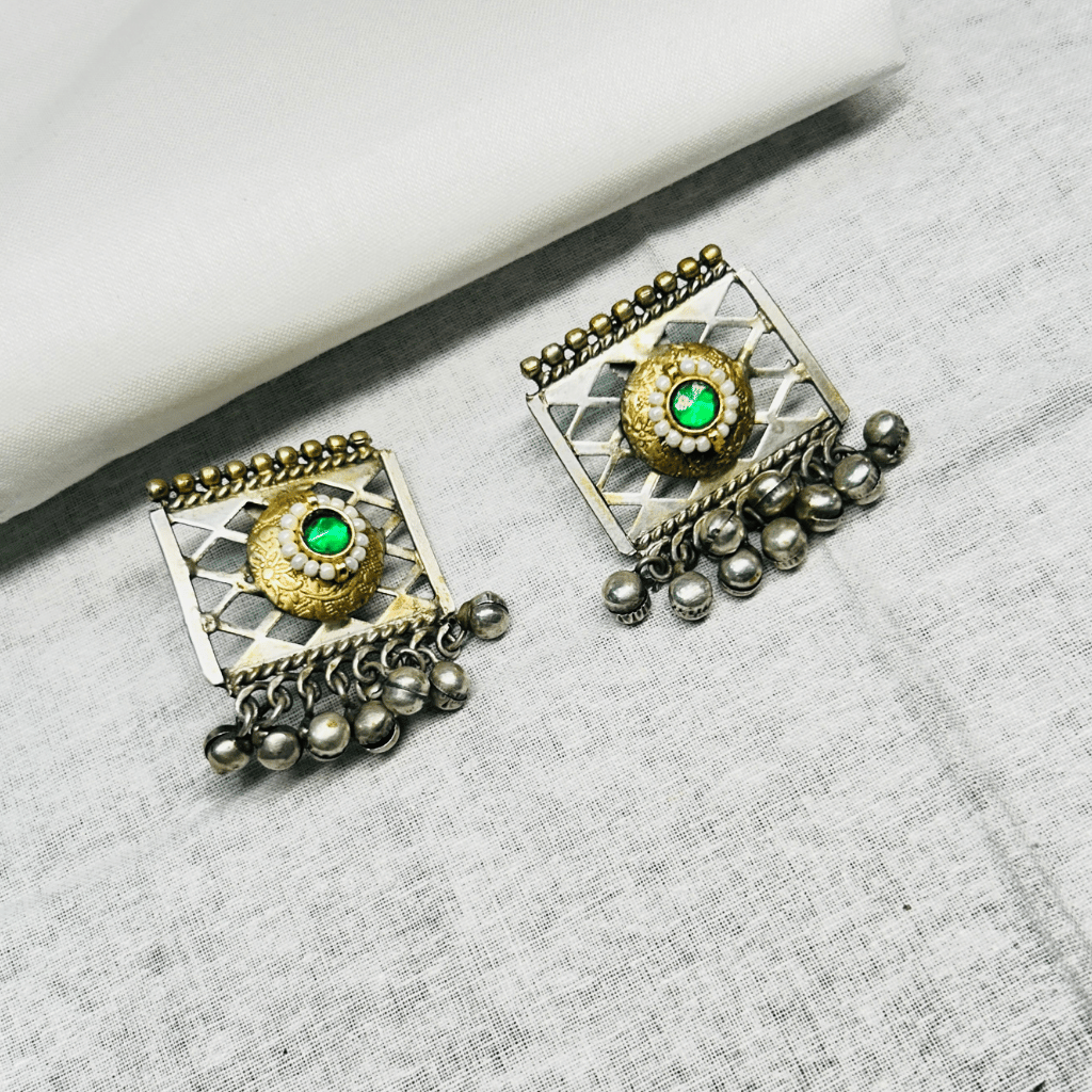 Handcrafted Oxidised Silver Lattice Set with Floral Inlays