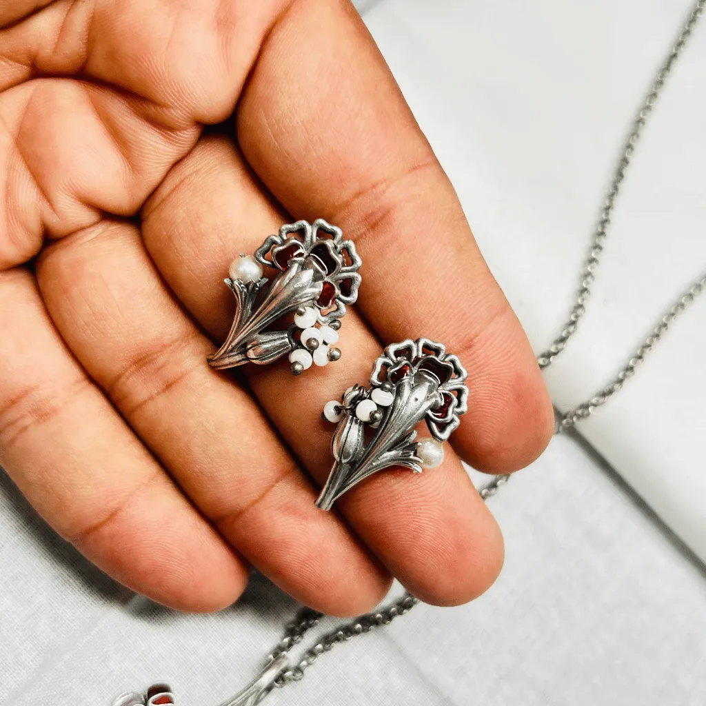 Experience the poetry of nature with the Malhar Ensemble. This set moves away from the traditional heavy choker and embraces a fluid, Art Nouveau-inspired silhouette. Featuring delicate vine-like structures and blooming floral motifs, it is designed for the woman who finds beauty in the fine details.