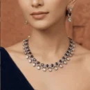 Add a touch of vintage-inspired glamour to your jewelry collection with this exquisite American Diamond necklace. Featuring a striking row of deep maroon stones paired with brilliant-cut white droplets, this set offers a high-shine, diamond-like finish. Handcrafted for lightweight comfort and a sleek minimalist fit, it is the perfect statement piece for weddings, engagements, or special festive celebrations